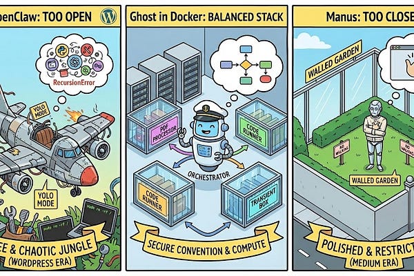OpenClaw is Wordpress, Manus is Medium. Where is Ghost in a Docker?