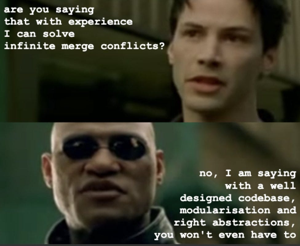 Delegating to humans is not a very different journey. Less experienced engineering managers and tech leads often say things like “don’t work on that part of the codebase, someone is working on things that will change it anyway”. As you master the art of orchestrating multiple people wandering around you codebase, you learn to modularise, create ‘contracts‘ between moving pieces, and make it easier for more and more people to simultaneously operate on the same parts of the codebase, and still keep the plates spinning.