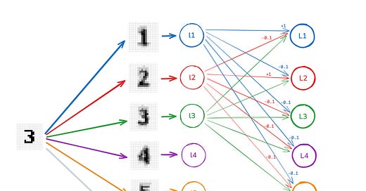 While in the above formula, in an overly simplistic way, the penalty factor of the input looking like one of the other references is taken as -1/9, in reality, some numbers look more similar to each other than others. For example it is more likely for the digits 5 and 6 to get confused with each other than for 5 to be confused as 9. So we might not want to uniformly penalising an input looking like some other number by -1/9 but by specific amounts for each of the other inputs too.